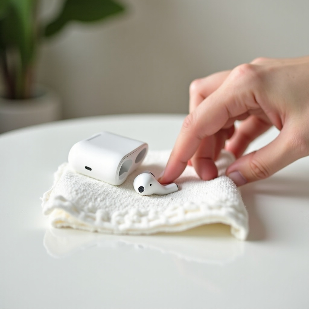 - Alkuperäiset kuivaustekniikat: Kuivaa varovasti AirPodisi ja latauskotelo pehmeällä, kuivalla kankaalla. Varmista, että pääset kaikkiin saavutettaviin alueisiin, erityisesti aukkoihin.